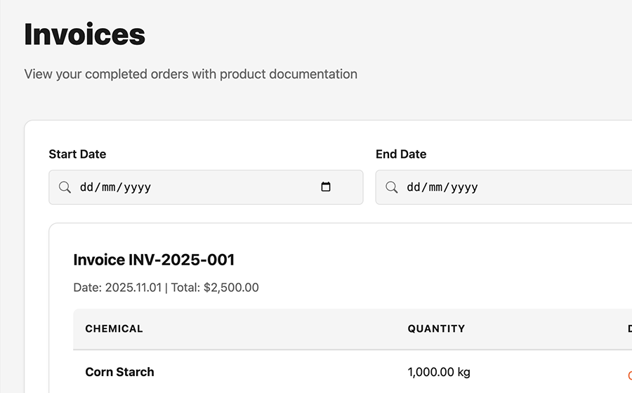 We handle sourcing, importing, and customs clearance so you can focus on your core business. All our chemicals are from ISO-certified suppliers.